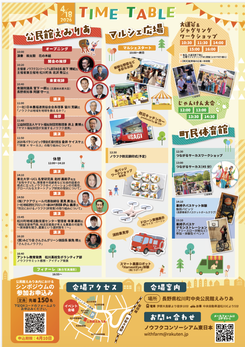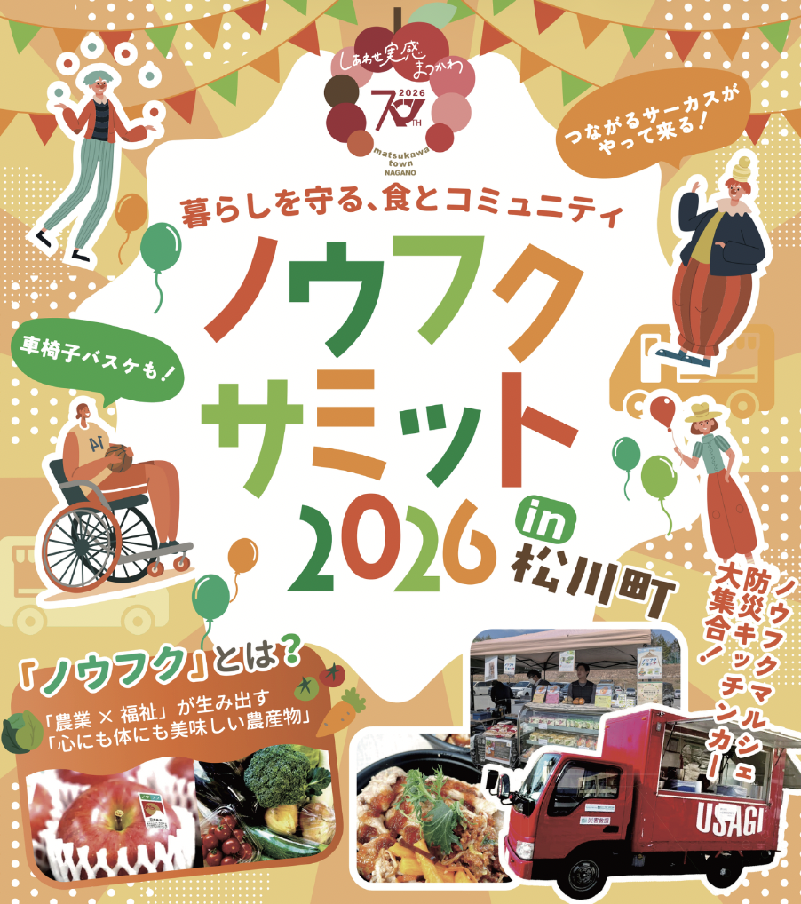 ノウフク・プロジェクトや農福連携の取り組みでいつもお世話になっている、株式会社ウィズファーム代表・ノウフクコンソーシアム東日本 会長の森下博紀さんから、「4月18日(土)に、長野県松川町でノウフクサミット2026 in 松川町が開催されますよー!」とお知らせをいただきました!