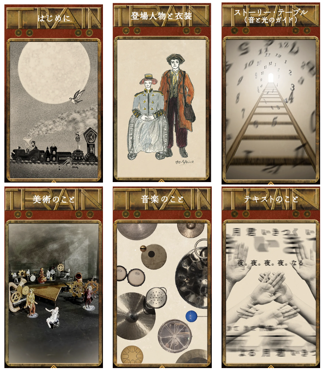 『TRAIN TRAIN TRAIN』の世界をより楽しむために、観劇前に世界観や登場人物、美術・音楽・テキストなどについての手がかりを提示する情報提供サイト